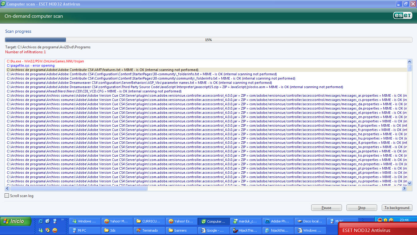 O4 - HKLM\..\Run: [egui] "C:\Archivos de programa\ESET\ESET NOD32 Antivirus\egui.exe" /hide /waitservice
