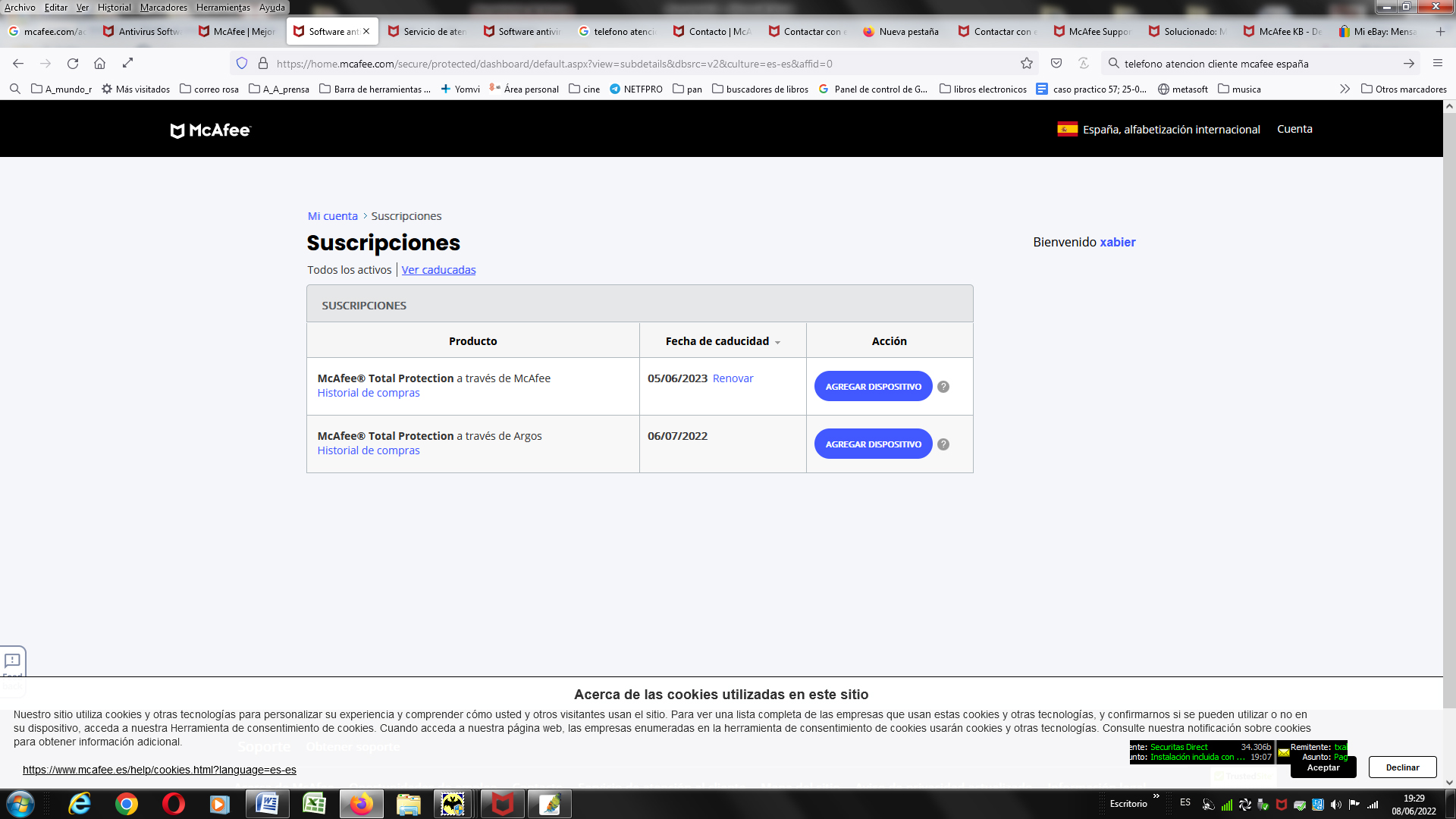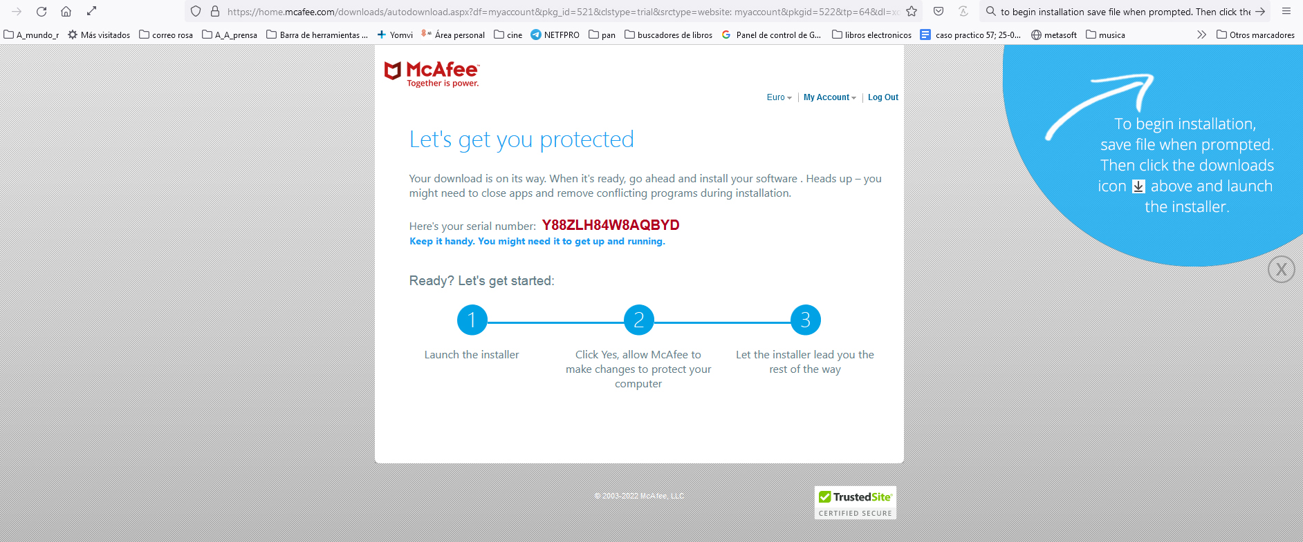 Una vez comprada la licencia, procedo a su activación, observo que en la cuenta está todo correcto que me aparece ya actualizada y con la fecha de renovación por un año más y procedo a añadir dispositivo. Así lo hago, y me sale el mensaje de número de serie y de que se va a descargar. Me indica que se va a descargar pero no descarga nada. Lo intento de varias formas y no descarga nada.