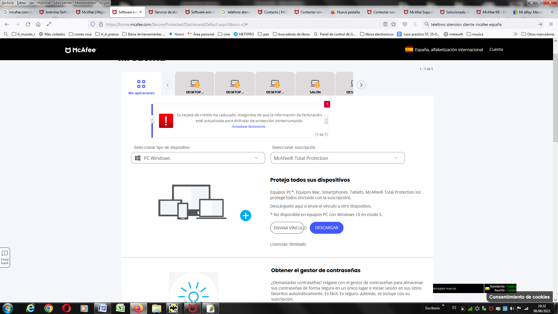 Antivirus mcafee problemas instalación en ordenador con window 7 profesional